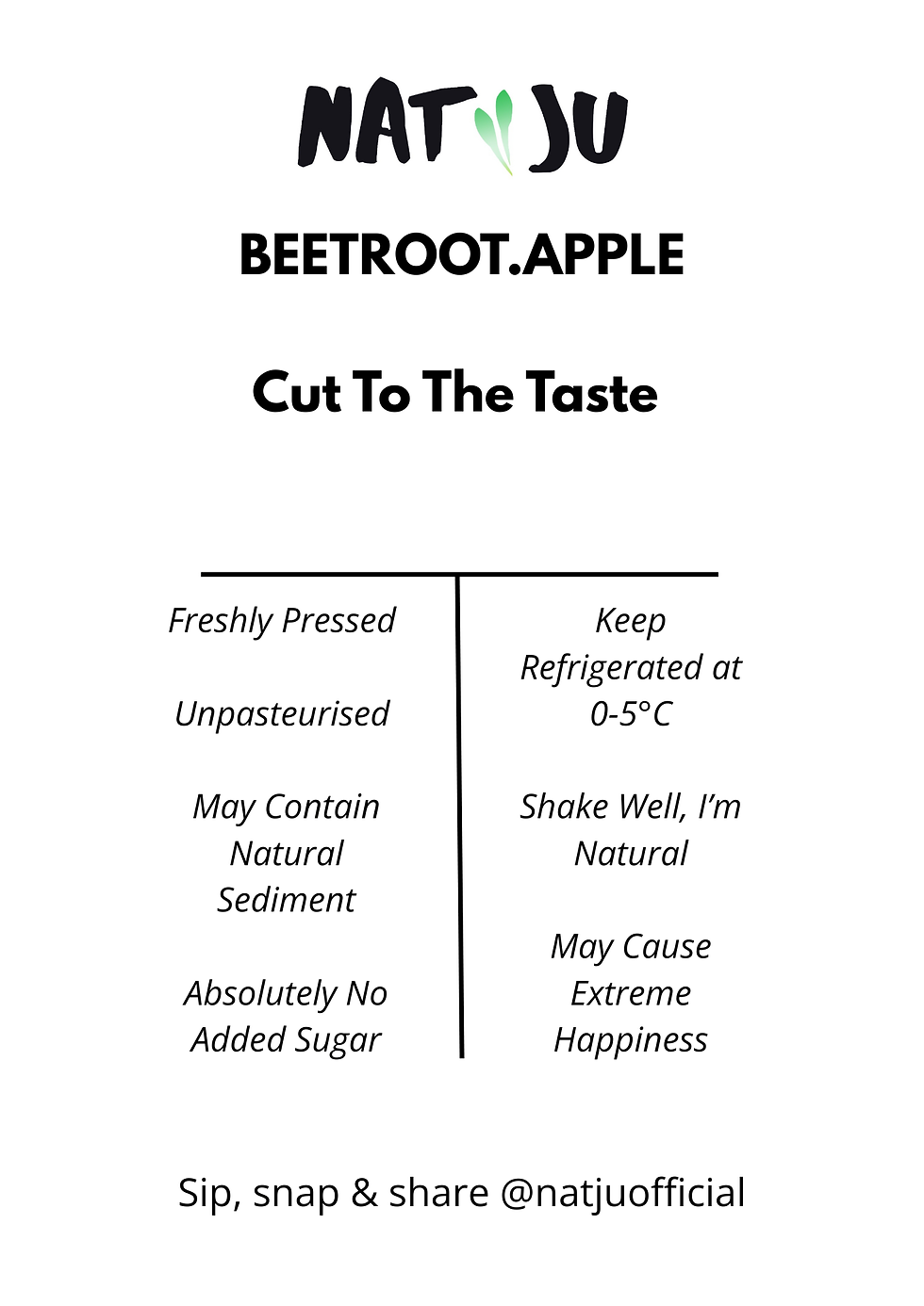 Nat-Ju has been quenching the thirst of the UK since January, 2020. As an independent Juice Shop, we have developed relationships with exceptional vendors to bring you the best quality products.